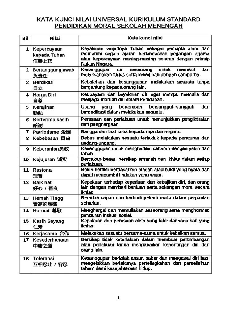18 nilai universal kssm pendidikan moral spm bil nilai definisi 1. Setiap tugas dan kewajiban selalu diikuti oleh tanggung jawab, baik tanggung jawab secara moral kepada tuhan yme maupun tanggung . Kesanggupan bertolak ansur, sabar dan mengawal diri bagi mengelakkan berlakunya pertelingkahan dan persel.